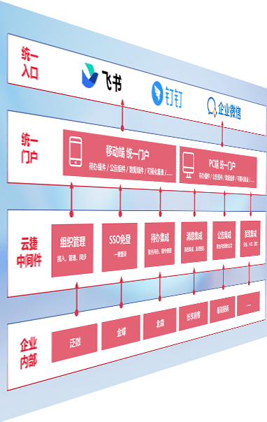 对协作平台提供支持服务,,,支持企业应用与协作平台对接,,,包含组织同步、、消息集成、、待办集成等。。支持目前主流的协作平台:钉钉、、企微和飞书。。